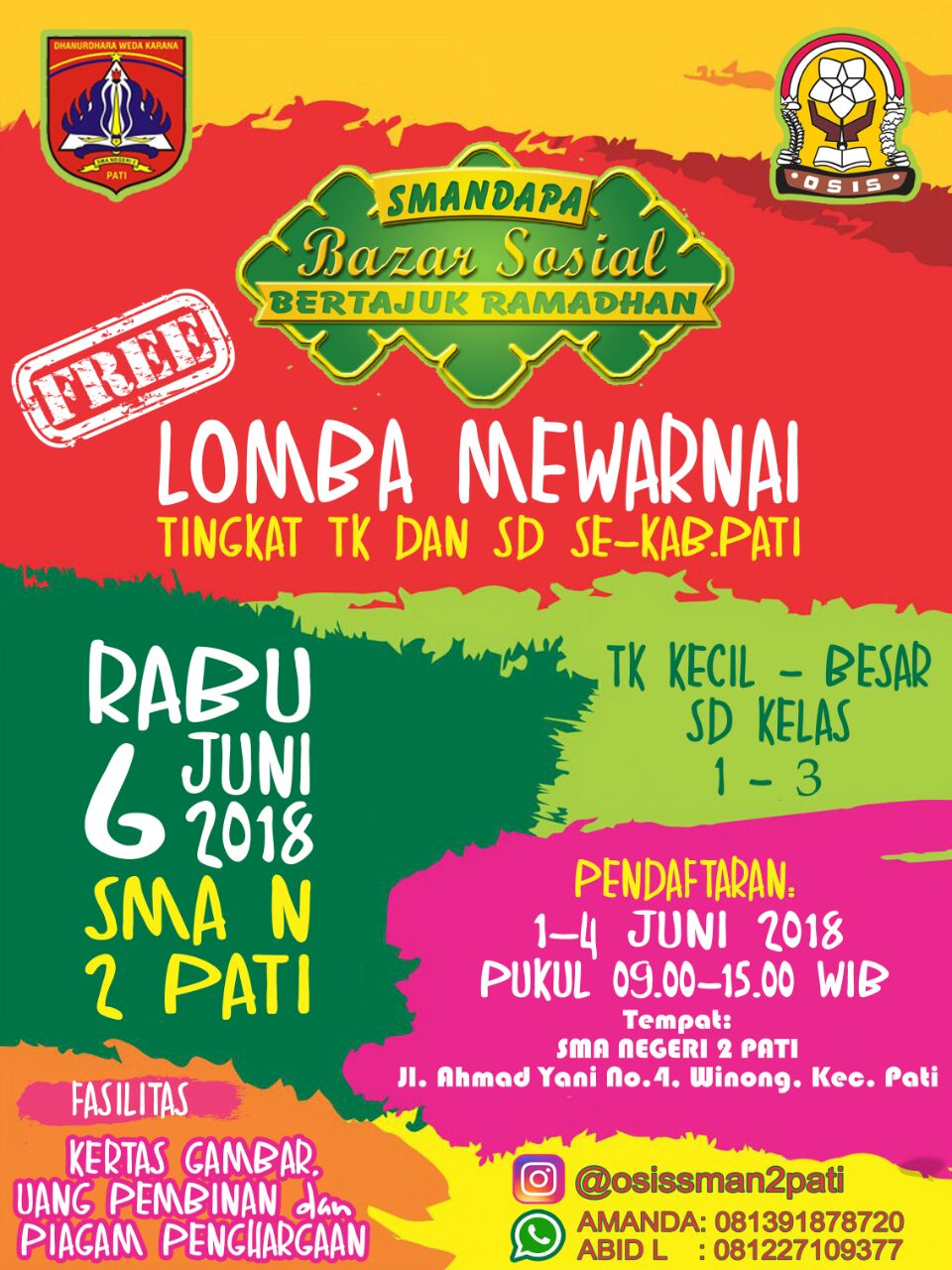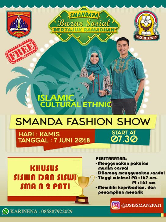 2018-06-04Agenda Bazaar Sosial SMA Negeri 2 Pati diselenggarakan Setiap Bulan Ramadhan, beraneka sembako, serta kebutuhan jajanan, bahan pokok, serta stand pakaian gratis dan pantas pakai juga tersedia, dan tak lupa pemberian santunan kepada fakir miskin dan anak yatim serta agenda buka puasa dengan Bp. tukan Becak di sekitar SMA Negeri 2 Pati